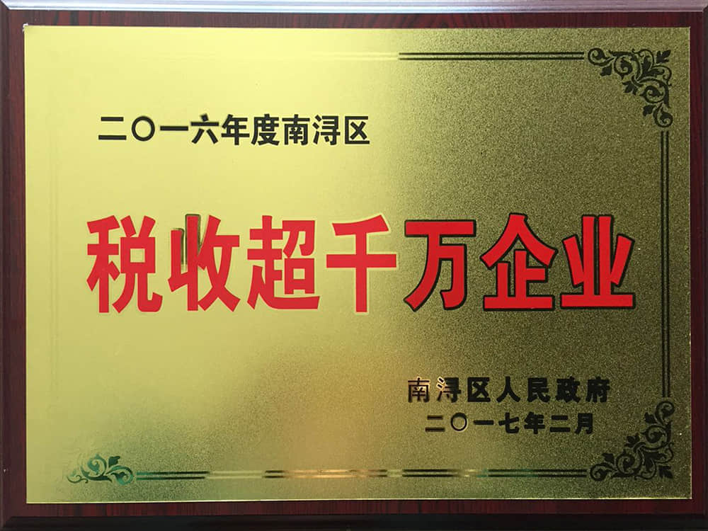 • 2016年度南潯區稅收前十強企業