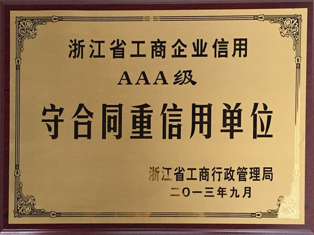 2013浙江省工商企業(yè)信用AAA級守合同重信用企業(yè)